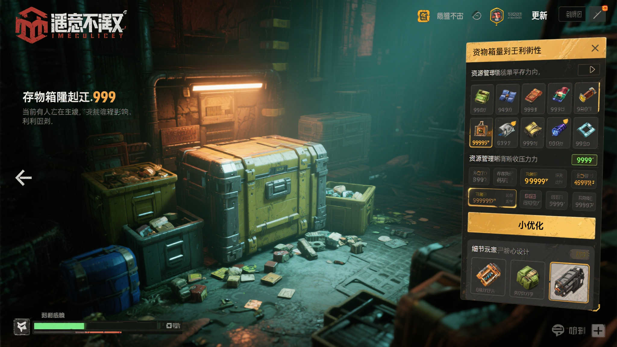 一场改变游戏体验的更新:储物箱堆叠上限的重大突破 如果你是《恶意不息》的忠实玩家,那么最近的补丁4更新一定让你眼前一亮!尤其是储物箱堆叠上限从99提升至999这一改动,简直是无数玩家的福音。前言先卖个关子:你是否曾经因为背包空间不足而被迫丢弃珍贵资源?是否因反复整理库存而感到头疼?这次更新直接解决了这一痛点,让你的游戏体验更加顺畅。下面,我们就来详细聊聊这一更新的意义与影响,带你全面了解这一变化如何优化你的冒险旅程!